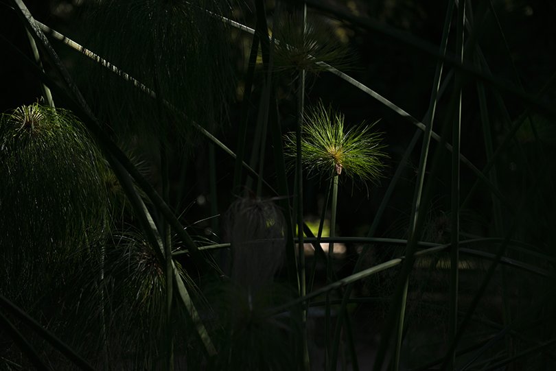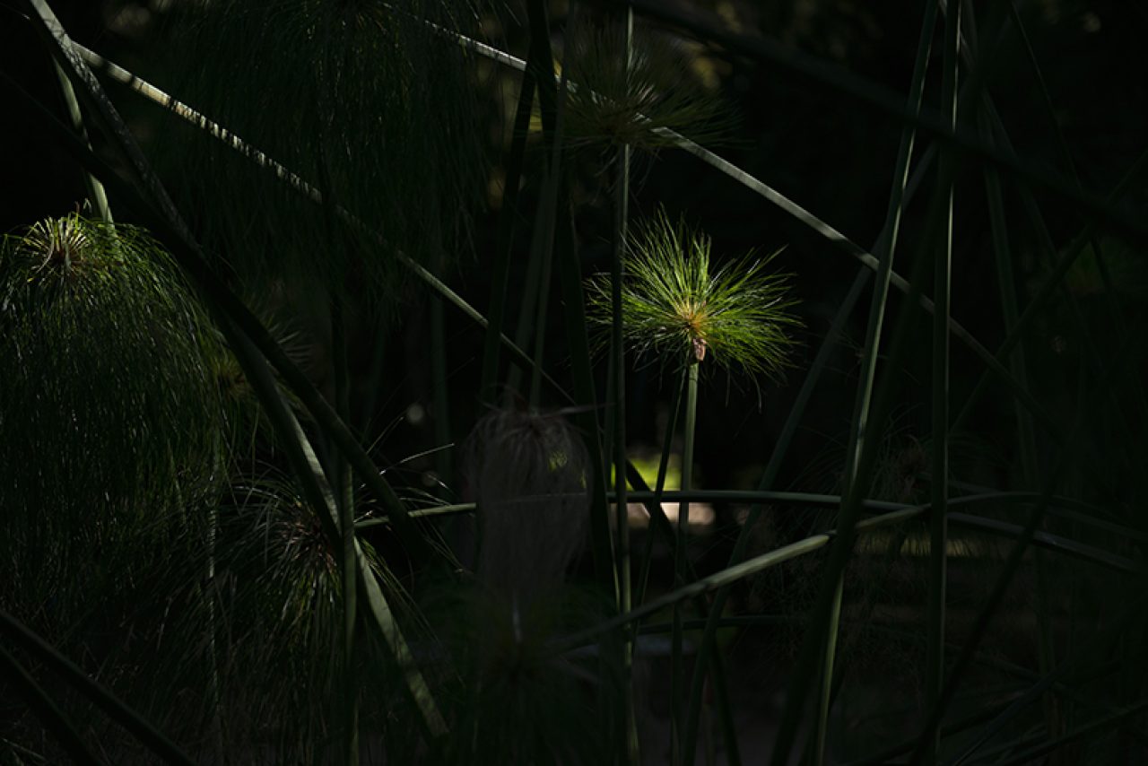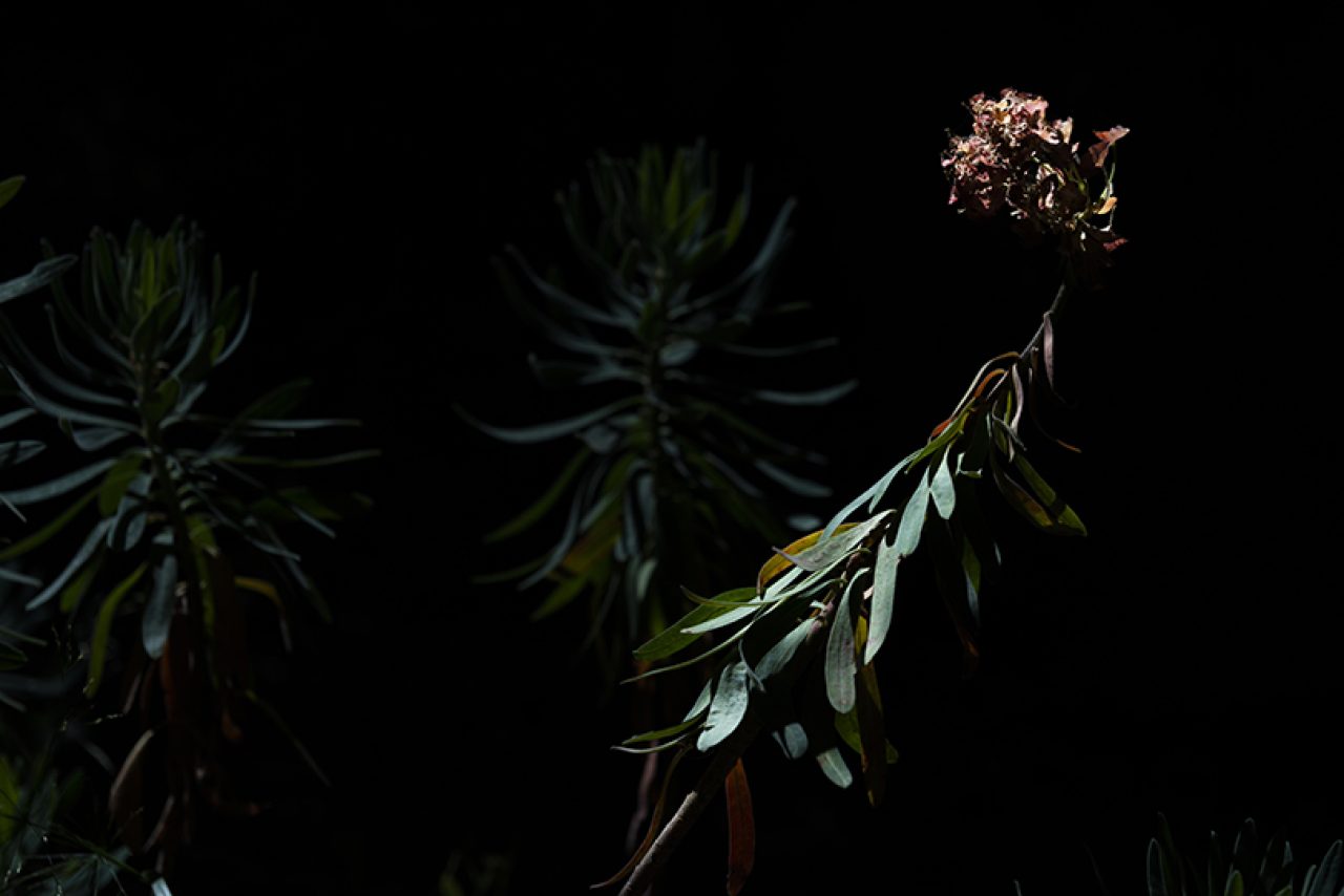 Piante e fiori protratti verso spiragli, paiono lenti animali tesi verso l’alto. Corpi, volti. forme che evocano la luce, in quiete.